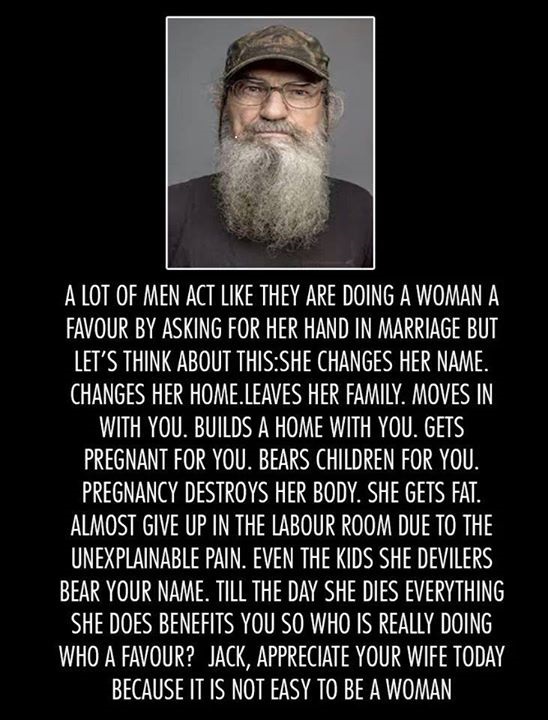 And God promised men that good and obedient wives would be found in all corners of the world. Then he made the earth round – and laughed and laughed and laughed.