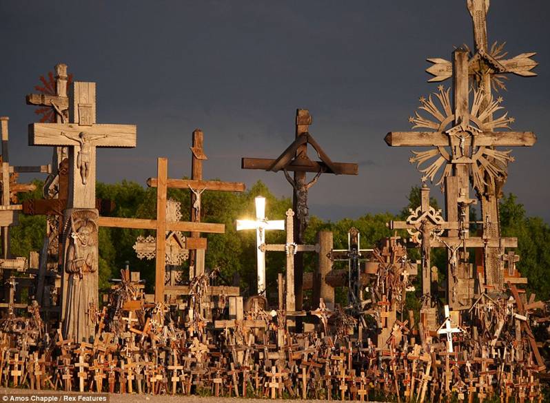 What a sight to see! The tradition of leaving crosses by relatives who have no bodies to bury is a sight to see. The Hill of Crosses, Kryziu Kalnas, is located in the city of Siauliai, Lithuania. The tradition of leaving crosses began after an uprising of the Polish and Lithuanians against the Russian tsar was squelched in 1831. Today there are about 200,000 crosses at the site, excluding carvings and shrines, made out of everything from wood to metal.