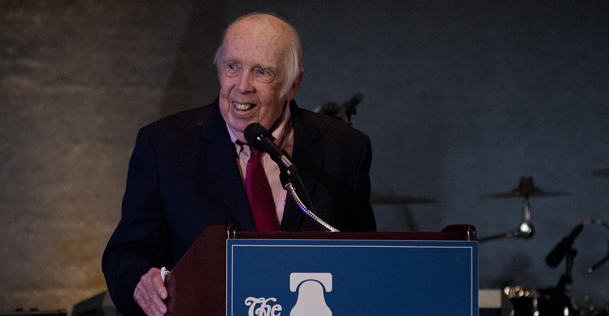Stan Evans at a Heritage Foundation dinner in his honor in 2011. Sad news this morning (March 3 2015) of the passing of M. Stanton Evans at the age of 80. He was, in addition to his long list of books and distinguished career in journalism, the author of the Sharon Statement, one of the founding documents of modern conservatism produced at the founding of Young Americans for Freedom in 1960.