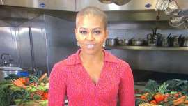 Time will tell if “bald is beautiful” on women! Is she trying to start a new fad? One thing for sure – it will save her a lot of time by not having to worry if her hair is in place or she won’t have to worry about any bad hair days. She looks so young – is that really the First Lady or a spoof? Or is she trying to change the subject from the Iran nuke talks? I guess a bald head is better than no head at all!