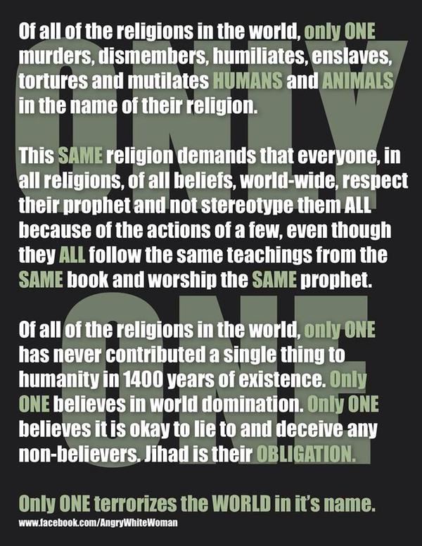 In America we have the Constitution and this right gives us “freedom of speech and religion.” We must not accept this notion that any one religion is the only religion.