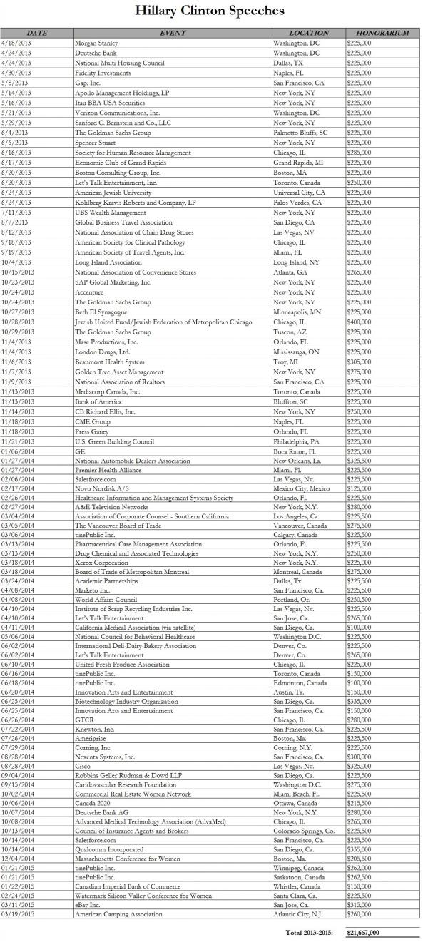 In total, Hillary raked in $21,667,000 on the speaking circuit.