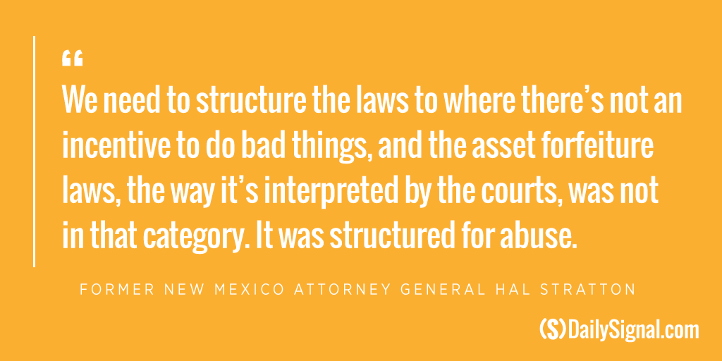 “We need to structure the law to where there’s not an incentive to do bad things, and the asset forfeiture laws, the way it’s interpreted by the courts, was not in that category,” Stratton said. “It was structured for abuse.”