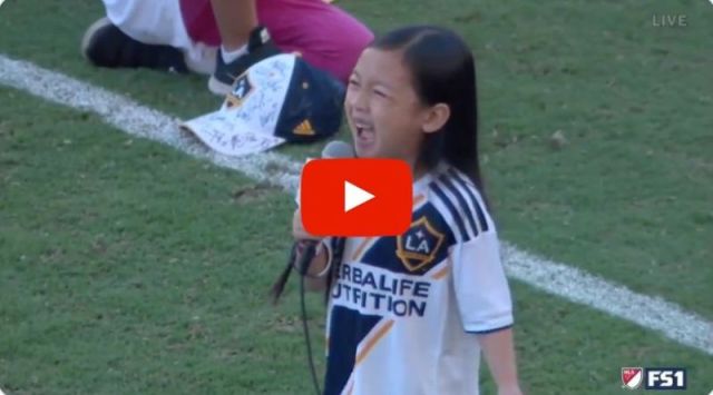 Twitter: @LA Galaxy Beyonce? Lady Gaga? Pink? Kelly Clarkson? Nope, it’s Malea Emma Tjandrawidjaja, the 7-year-old “The Star Spangled Banner” performance winner! Tjandrawidjaja belted out the national anthem to a stunned crowd at the LA Galaxy game against the Seattle Sounders on Sunday night, and let me tell you, I am beyond impressed atthis…