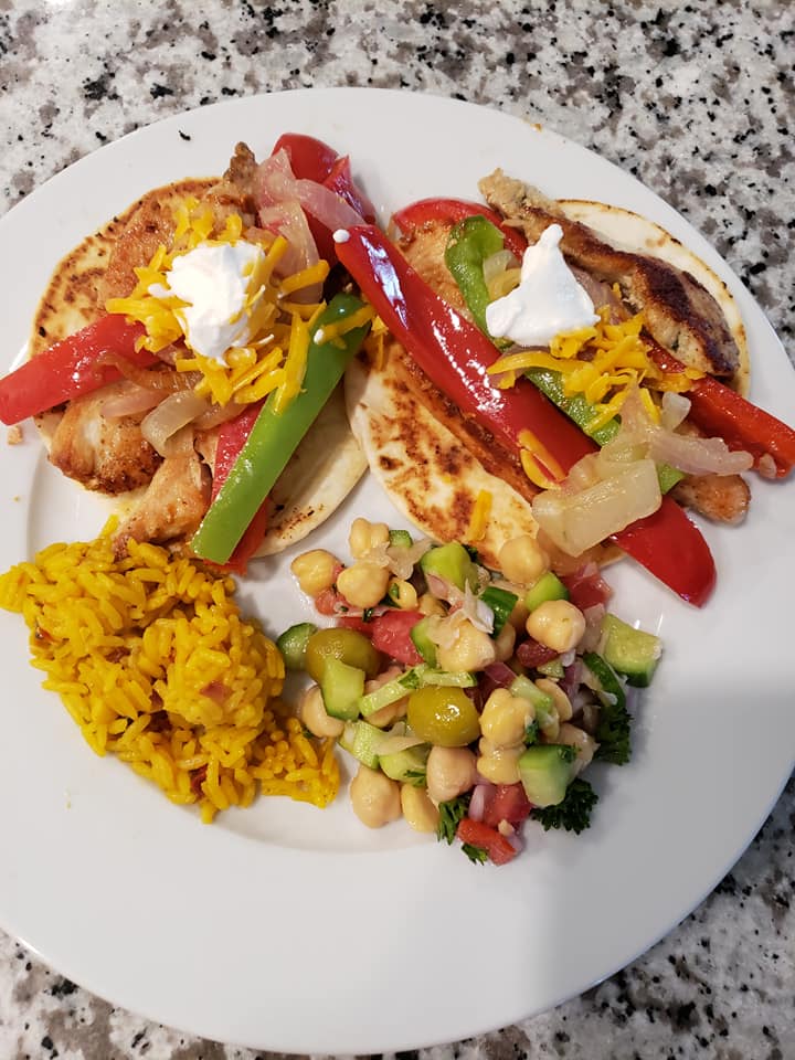 What a feast! Dinner is chicken fajitas w/ Goya seasoning, Goya Mexican rice, and Goya chick pea salad. Oh and Goya cookies. Delicioso!