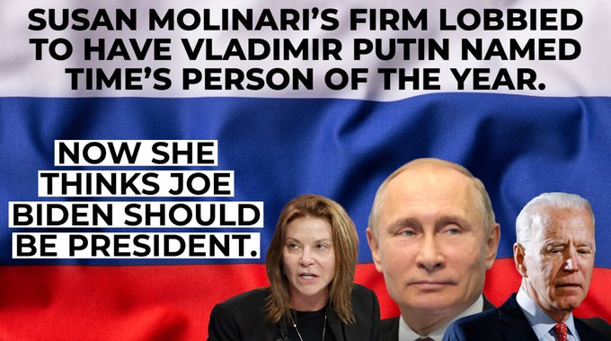 One of the people who spoke at the Democratic National Convention was a woman named Susan Molinari. She was a Washington, DC lobbyist for Russia.