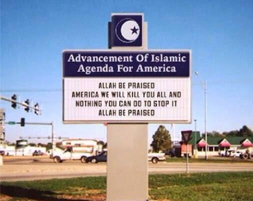This sign needs to be removed and they should go back to where they came from if they can’t assimilate to the Constitution. We tried to free them by fighting in their country; but, that wasn’t good enough – Muslim Obama – dragged them here to start a war in our own country; i.e., radical left terrorists called BLM/Antifa. They are AOC+3.