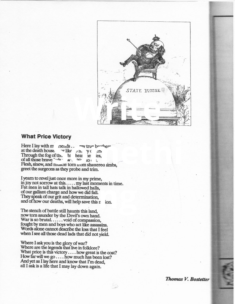Here I lay with my friends….my true brothers, at the death house door like so any others. Through the fog of thought I hear the cries, of all those brave lads now waiting to die. etc.