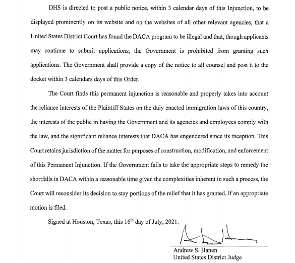 On Friday, Federal Judge Andrew Hanen of Texas ruled that DACA (Deferred Action for Childhood Arrival)—a program preventing hundreds of thousands of undocumented minors from deportation—is illegal and must be cease admitting new applicants.