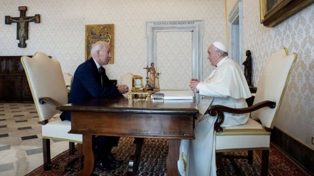 Biden noted that the pope did not provide him with communion during their time together. The president also reportedly delivered a “challenge coin” to the pope.