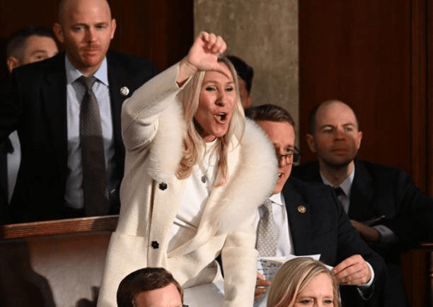 Throughout the speech, McCarthy gave a clinic on squirming uncomfortably. At one point, Rep. Marjorie Taylor Greene shouted “LIAR!” at Biden. When the president was speaking about a man who lost his child to a fentanyl overdose, Republicans began shouting Biden down, one yelling, “It’s your fault!”