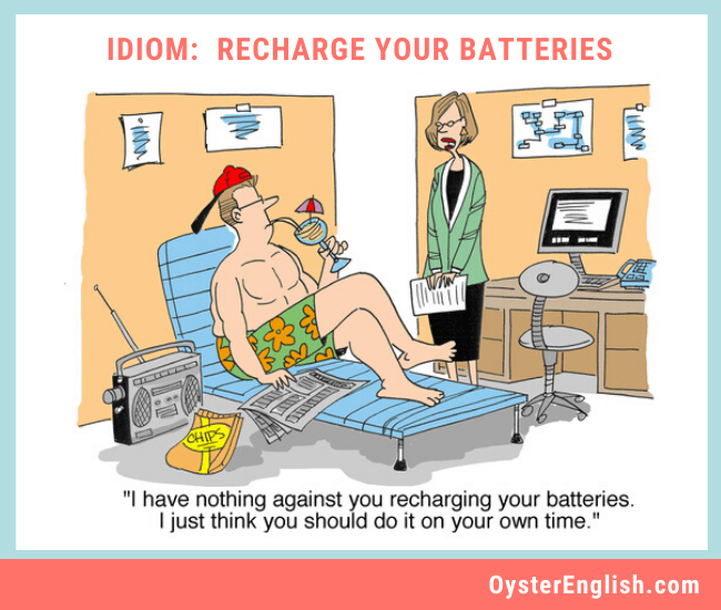 Recharge one’s batteries: to rest or relax in order to get energy back to do things again.