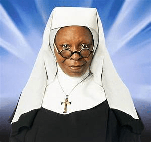 Did Whoopi play her religious role as a nun here?
