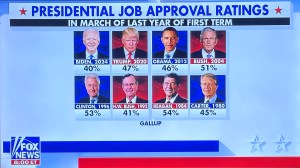 Breitbart News recently released an analysis of the “RealClearPolitics” polling averages showing that Biden’s reelection poll numbers are worse than former Presidents Trump, Obama, and Bush. At this point during the 2024 presidential campaign, SlowJoe’s approval rating is the lowest across the board, with numbers that are worse than the three previous presidents’ during the fourth year of their first terms. His approval rating is lower than Trump: 47%, Obama: 46% and Bush 51%. Breitbart reports that Biden is at 40.3% approval, while 56.3% disapprove of the president. Any number under 50% is the end!!