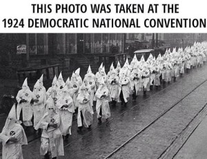 By the mid-1860s, the Republican Party’s alliance with Blacks had caused a marked strain on the Democrats’ struggle for the electoral majority in the post-Civil War era. In 1866, the Democrats began to develop a new secret political action group whose sole purpose was to help gain control of the electorate. The new group was known simply by their initials, KKK (Ku Klux Klan.) Sound like any current day group that the Democrats refuse to condemn?
