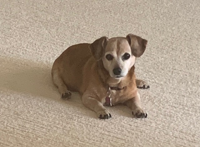 Last week, Lucy, who was Melissa’s family’s dog and lived with Michael and Melissa, was called to heaven. Lucy was 15 years old. When the three of them came to visit us in the past, we became very attached to Lucy. She was very aloof, initially, and would follow Melissa, constantly, while in our home. But, after a few trips, she became more comfortable in our home in that while we were watching TV she would come and sit by me and on road trips she would snuggle up next to me.