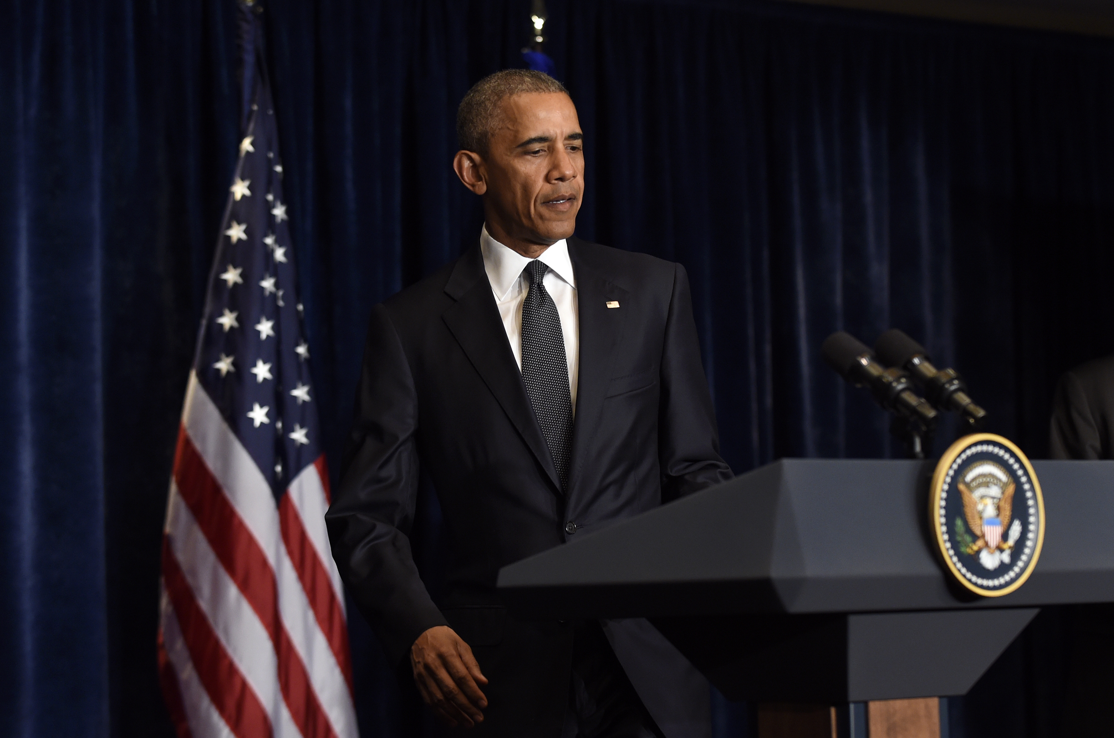 President Barack Obama arrives to addresses the overnight shooting of police officers in Dallas, Texas, in Warsaw, Poland Friday, July 8, 2016, before attending the NATO Summit. (AP Photo/Susan Walsh)